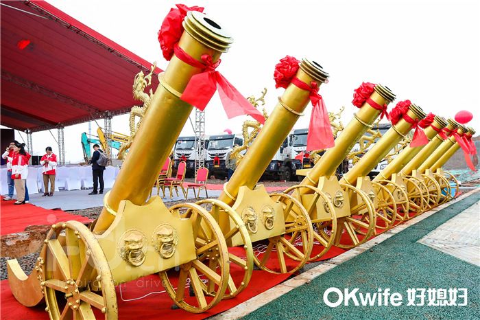 此刻,皇家禮炮、電子禮炮、小汽球、冷焰火的開釋,軍樂隊、神威鑼鼓的吹打、舞龍、舞獅的扮演,一起鏟車鏟土使開工典禮到達高潮。