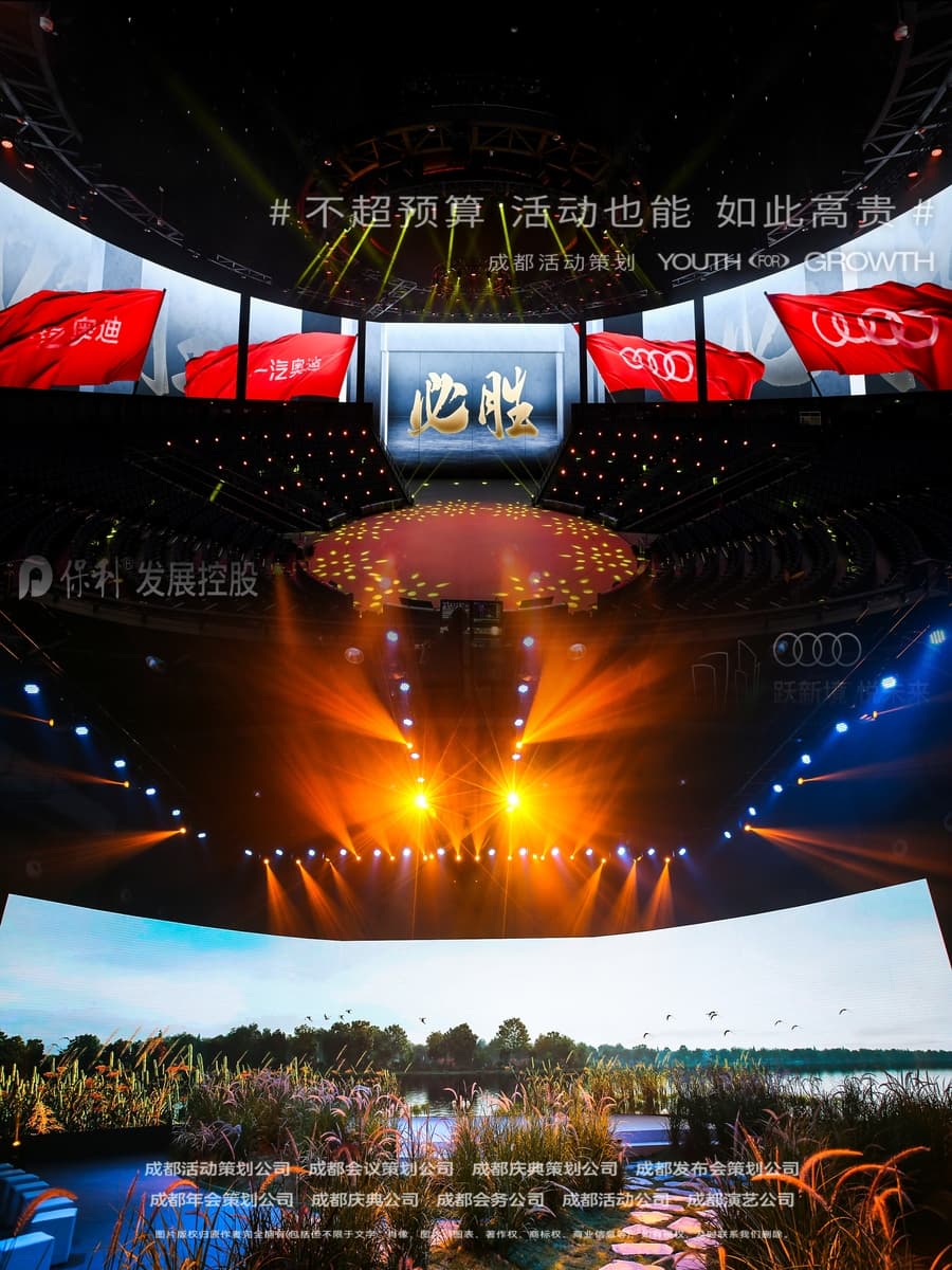 模塊化設計:將會議物料分為標準件(如桁架、基礎燈光)和定制件(如主題背景板),標準件重復使用率達80%;